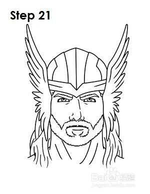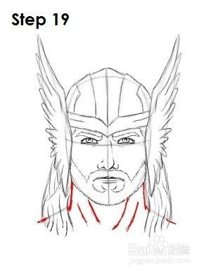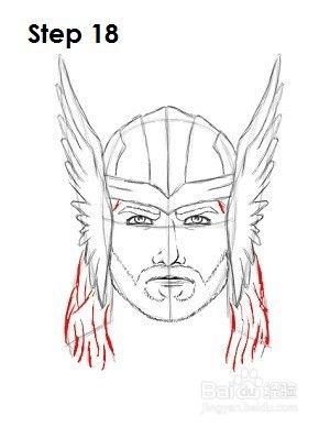 第18步:使用侧面的线条作为指引来画出Thor的长发。按照基本形状并在整个过程中添加更多曲线以将音量添加到锁中。
