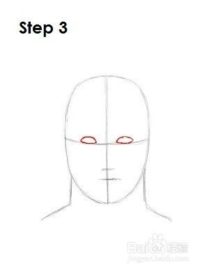 第3步:在水平线的顶部和垂直线的任一侧,画出Thor的眼睛,这就像两个小型的足球形状。