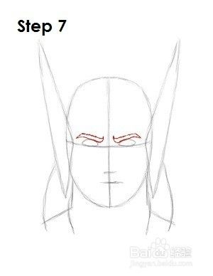 第7步:在每只眼睛的正上方画出雷神的眉毛。眉毛看起来像厚的复选标记。将它们朝着鼻子倾斜,让Thor有一种威胁性的怒吼。