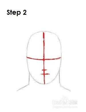 第2步:在椭圆形内部绘制两条相交的线,一条垂直线和一条水平线。在水平线下画两条较小的水平线。这些将是帮助您稍后放置Thor面部特征的施工线。