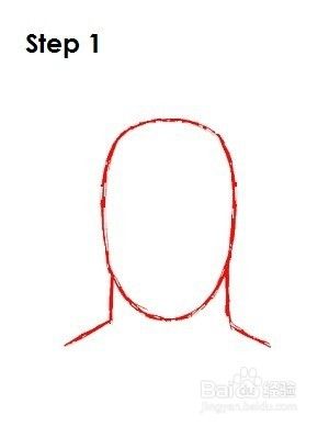 第1步:开始在页面中间画一个椭圆。在椭圆下方,在两侧绘制两条小斜线。这将是雷神头部和脖子的基本形状。