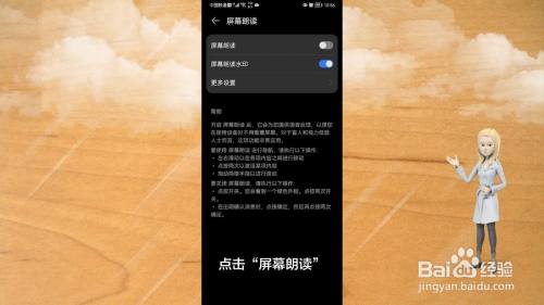 点击“屏幕朗读”,接下来就可以随意选择打开或者关闭手机的屏幕朗读功能。