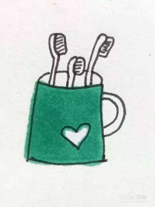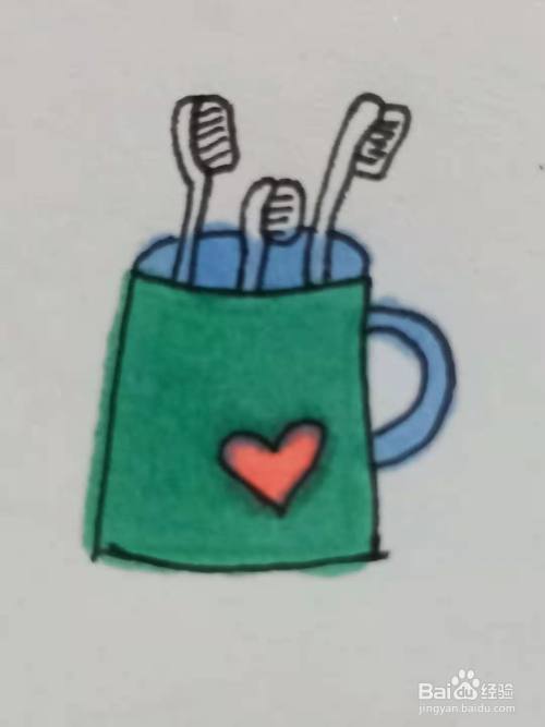 最后,将牙刷杯剩余的部分和牙刷部分涂上漂亮的颜色。