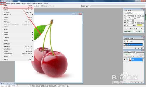 在菜单栏中“文件--打开”,调出一个图片到工作面板中。