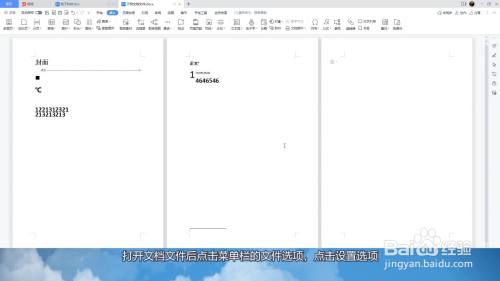 打开文档文件后点击菜单栏的文件选项,点击设置选项。