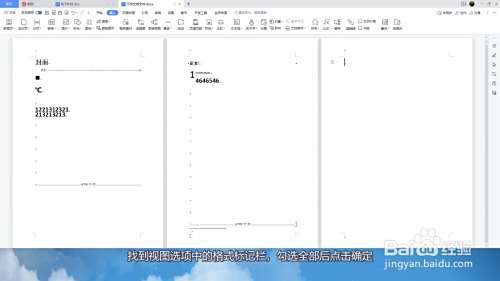 找到视图选项中的格式标记栏,勾选全部后点击确定。
