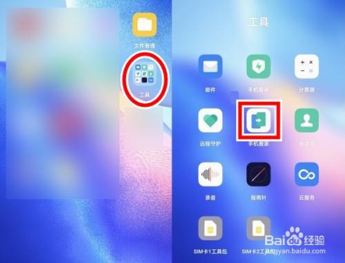 在手机工具文件夹里找出搬家应用,蓝绿色图标,点选打开;