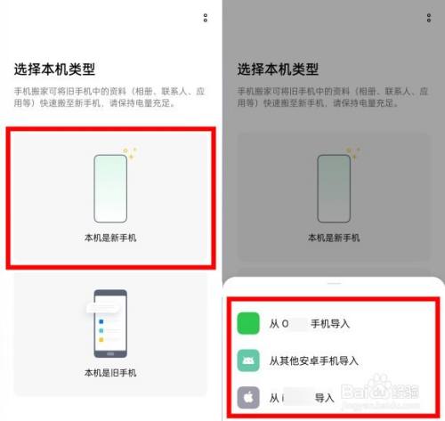 在选择本机类型页面,点选本机是新手机,再点选旧手机的种类,在扫码页面,用旧手机扫码;