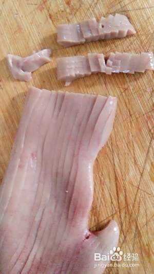 接着将切好的猪腰放入盐,醋,料酒用手抓一抓,这步是去味。