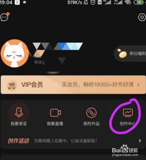 打开喜马拉雅,点击右下角的账号,进入个人页面点创作中心