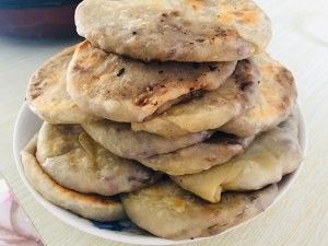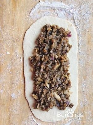 放入拌好的馅。从一面卷起来,团成面饼的样子忘记拍了。