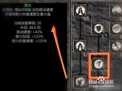 第二步活力20级,可以增加角色的移动速度以及耐力回复附和最大值。