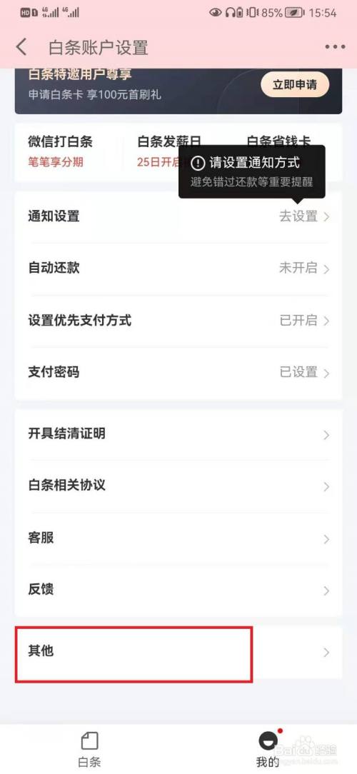 进入账户设置页面,点击【注销白条】即可进入京东白条注销流程。