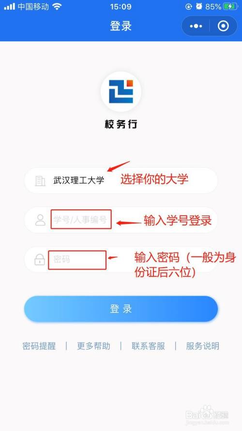 手机微信上搜“校务行”,并输入学号+密码(一般为身份证后六位)登录