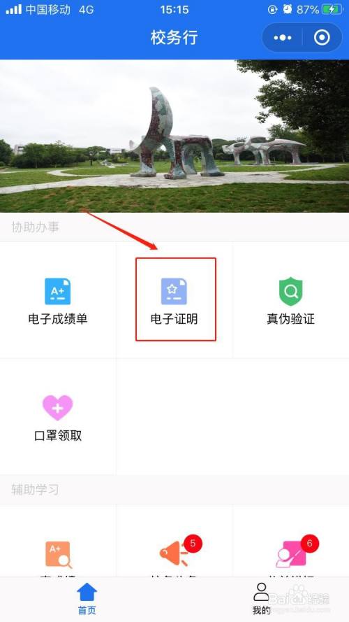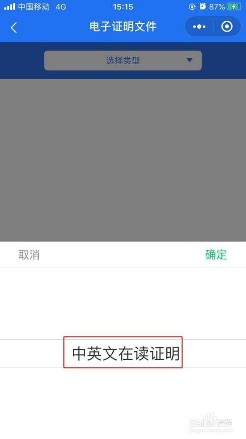 功能主页选择“电子证明”,类型选择“中英文在读证明”