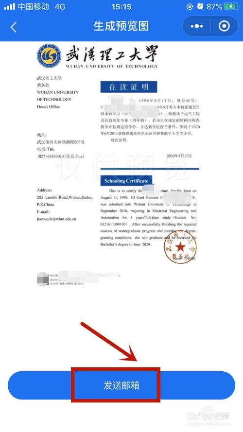 在读证明将生成电子预览文件,可输入邮箱号码将文件进行发送