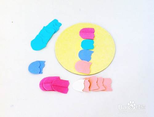 用不同颜色的海绵纸剪出3条长条状的,准备当作鱼鳞。