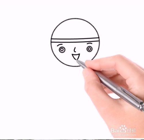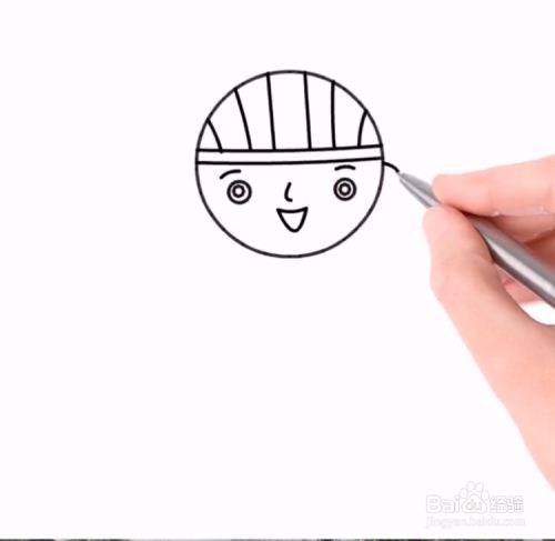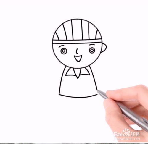 接着画出工人的眼睛,眉毛,鼻子,嘴巴,如下图所示。