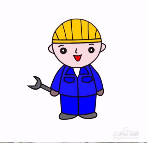 最后为工人的安全帽和衣服涂上颜色,如下图所示,工人就画好了。
