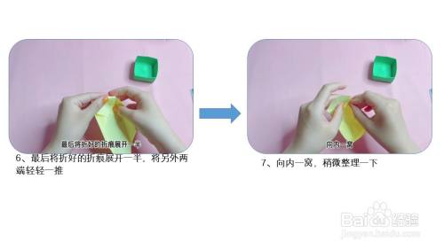 最后将折好的折痕展开一半,将另外两端轻轻一推,向内一窝,稍微整理一下。