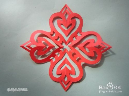 打开,一幅漂亮的四折窗花就剪好了,如图所示。