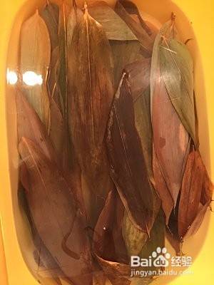 提前一天用一大盆泡软干粽叶,若是用新鲜的粽叶则泡两三个小时即可。