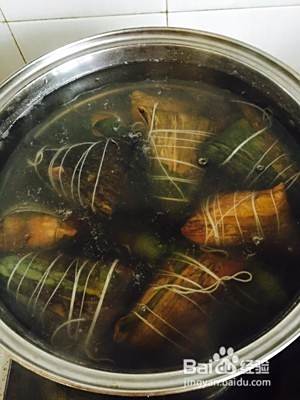 煮粽子时先把水烧开,再放粽子,这样煮好的粽子粽叶不粘米。水一定要没过粽子,放入粽子大火再次烧开后转小火闷煮3个小时关火,关火后再闷半小时就可以出锅品尝啦!