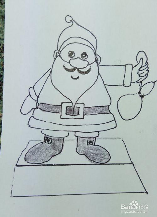 用线条和曲线画出圣诞老人的腿部和脚部,他长得可真是有个性呀。