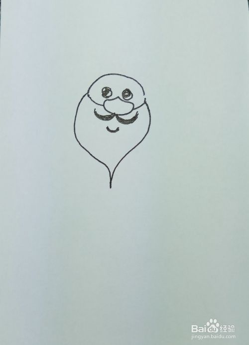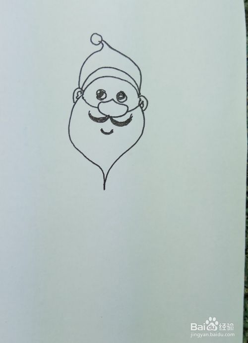 在白纸上用线条和曲线画出圣诞老人的头部轮廓,画出他的五官和他的大胡子。