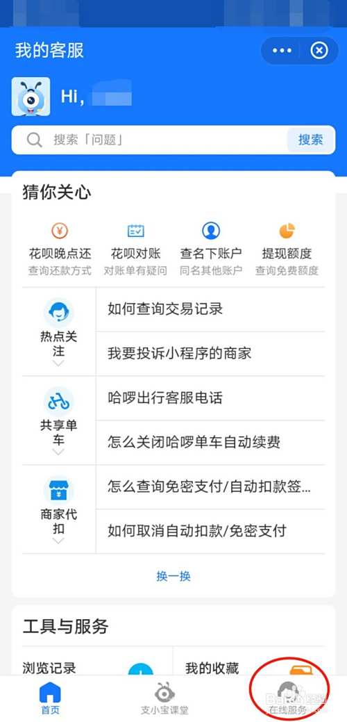 在我的客服界面右下角,选择“在线服务”,进入服务对话框。