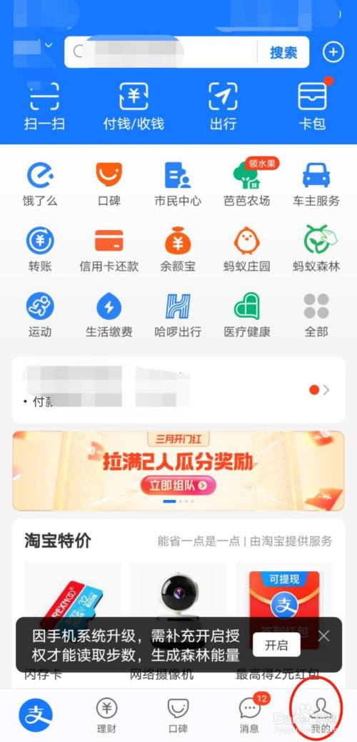 在支付宝右下角,选择“我的”,进入个人界面。