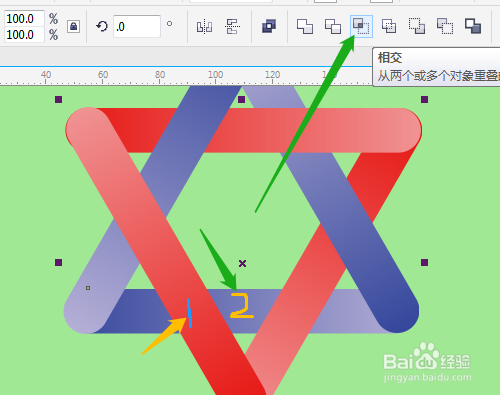 9. 单击选定图形1矩形后,按Shift键选图形2,单击相交图标。按