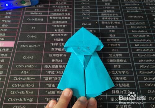 最后,将脸放入提前折好的身体中并用黑色中性笔画上眼睛等,如图所示。
