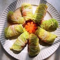 百菜不如白菜,白菜含有丰富的粗纤维,不但能起到润肠、促进排毒的作用又刺激肠胃蠕动 。秋冬季节空气特别干燥,寒风对人的皮肤伤害极大。白菜中含有丰富的维生素C、维生素E,多吃白菜,可以起到很好的护肤和养颜效果。白菜猪肉卷利用白菜叶做皮,肉做馅。肉和百菜一起搭配,蛋白质被吸收以后,肉类的碎渣在蔬菜的高纤维帮助下可以很顺利地排出,容易被身体所吸收
