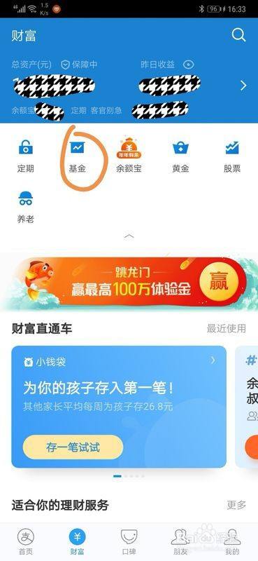 在财富界面中找到”基金栏“选项,并点击进入。