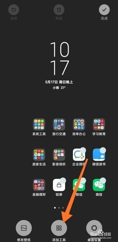 1、在手机桌面双指捏合,进入桌面编辑状态。