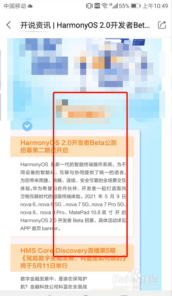 开发者联盟首页面,点击打开“鸿蒙系统公测招募公告”。