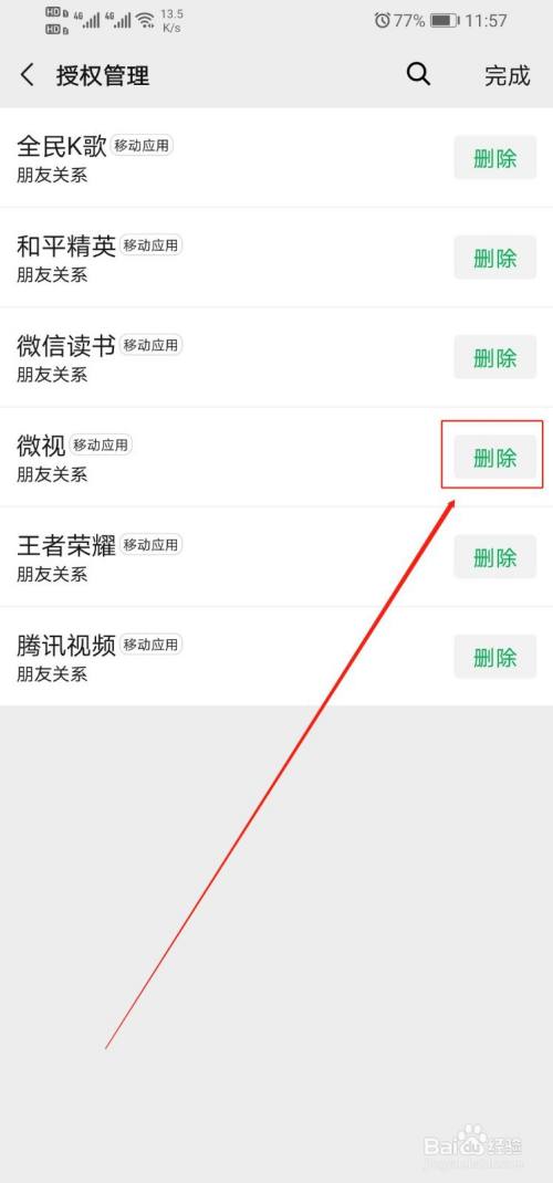 5、可以将想要解除登录授权的应用,点击右侧的“删除”按钮