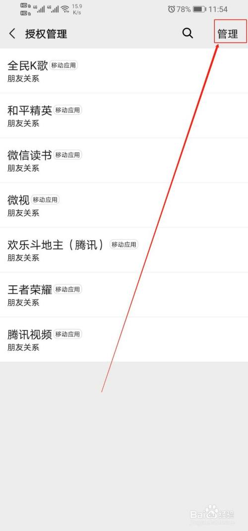 4、点击进入授权管理列表页,点击右上角的“管理”按钮