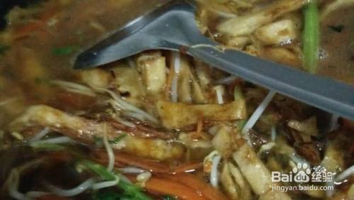 热油放蒜瓣花椒,葱姜随意,爱吃辣放点郫县豆瓣酱或蒜蓉辣椒酱小火炒香出油,出香味后放胡萝卜丝,炒几下放青菜,叶菜炒的时间短,茎菜长点,放饼丝,炒匀后放所有调味料,可以提前放小碗备用,炒匀,此时锅里会有点干放半勺水,防止糊锅,入味后加水,水量最少是食材的一半,因为我家爱喝汤所以会多放,一般是食材的1.5倍。一般水开后放豆皮,,再开锅后可打个鸡蛋碎,味道美美的的,最后放香菜闷一下,放香油出锅。