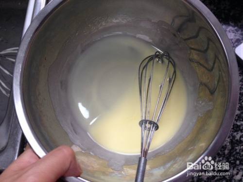 准备称量好所有材料,鸡蛋打入无水无油打蛋盆,油和牛奶放同一个容器里