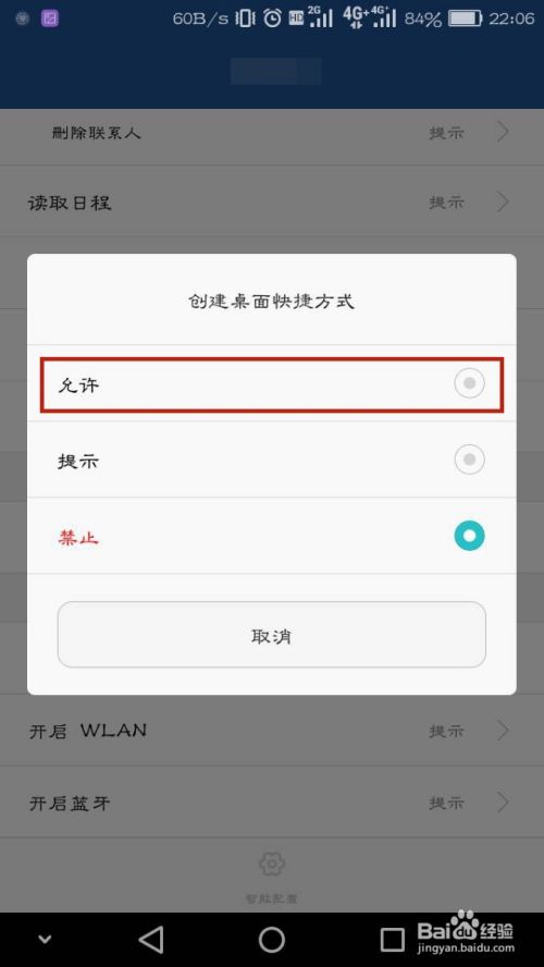朝下滑动手机屏幕,在最底页我们能看到设置相关中有“创建桌面快捷方式”这个选项并且是被禁止了的。这时候我们只需将禁止改为允许,这样我们就能在桌面看到此应用的图标了。