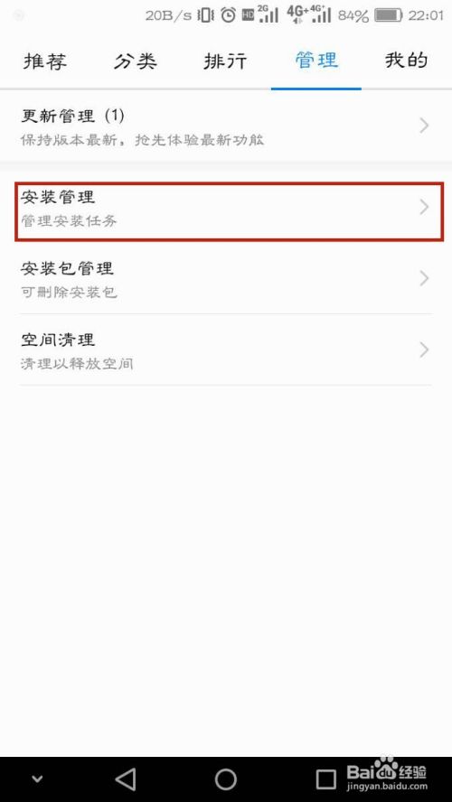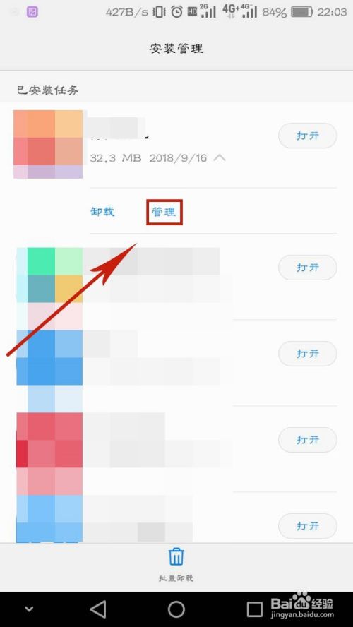 在我们才下载好但没有桌面的图标的APP那里点击“∨”处,再点“管理”就能查看到此应用的应用信息。