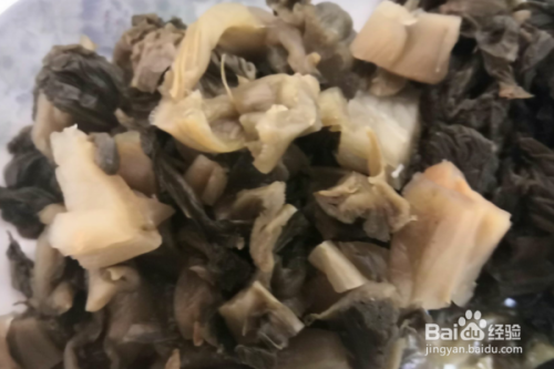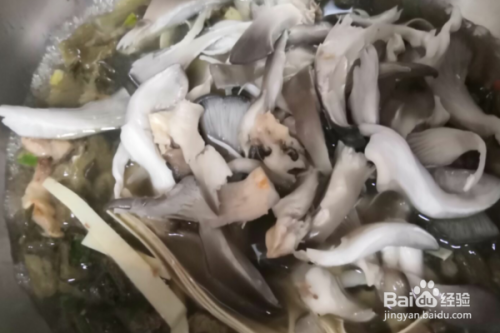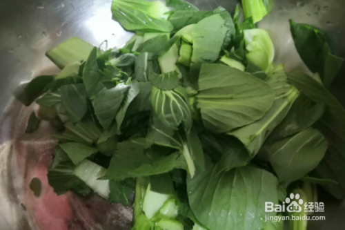 粉丝用水浸泡一下,上海青洗干净切碎,平菇洗干净后撕成一小段一小段的,酸菜洗净切碎段备用。