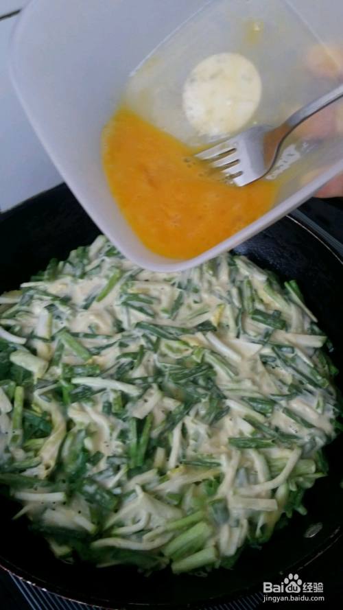 面粉加一个蛋加适量水和成面糊,能挑起后往下滴答就可以了,加少量盐,也可不加,手抖沒照清…