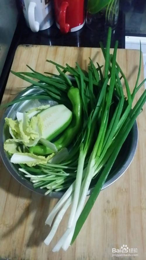 葱、韭菜切段,西葫芦切丝,尖椒切粒,娃娃菜芯切两半……还可放胡萝卜、洋葱和各种蔬菜
