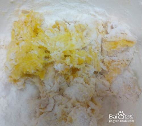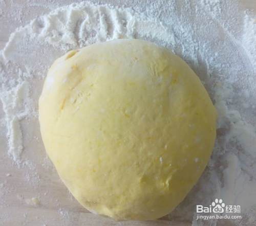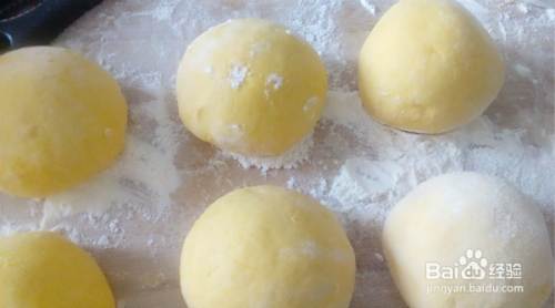 南瓜泥凉到温热后,加入酵母搅拌均匀。不用加水,直接加入适量面粉,沿同方向搅成面团,再逐渐加面粉将面团揉光滑。