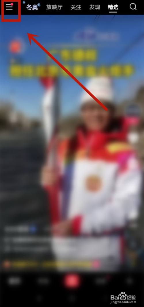 在快手首页界面内,找到左上方的“三”小标。