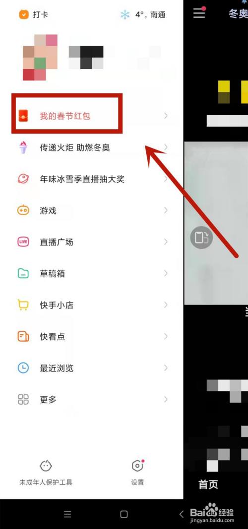进入后点击页面“我的春节红包”选项。