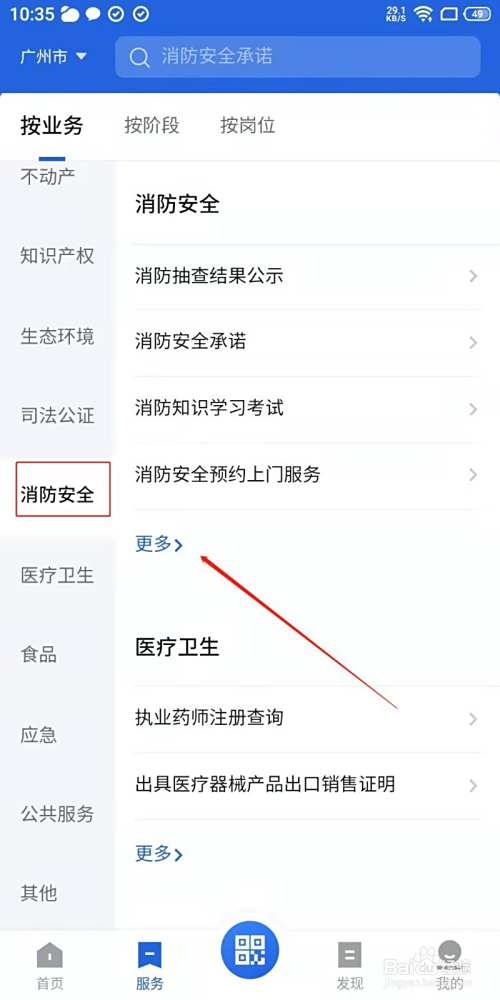 2、进入服务页面,点击消防安全更多